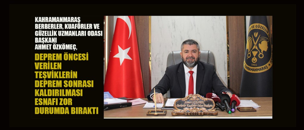 KAHRAMANMARAŞ BERBERLER, KUAFÖRLER VE GÜZELLİK UZMANLARI ODASI BAŞKANI AHMET ÖZKÖMEÇ: "DEPREM SONRASI TEŞVİKLERİN YENİDEN VERİLMESİNİ İSTİYORUZ"