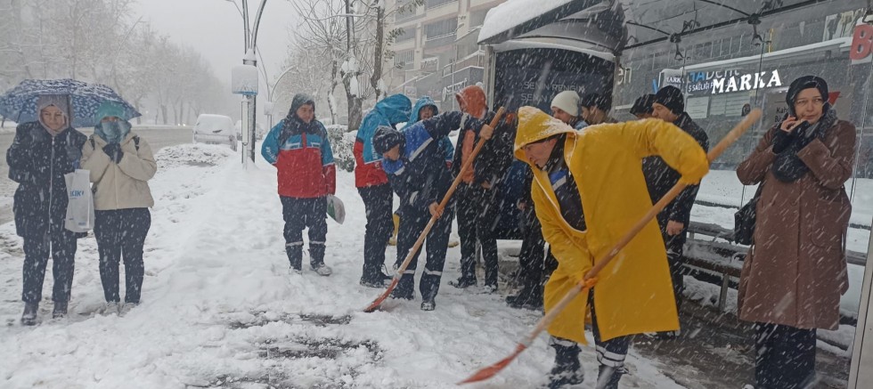 BÜYÜKŞEHİR’DEN YAYA YOLLARINDA KAR MESAİSİ
