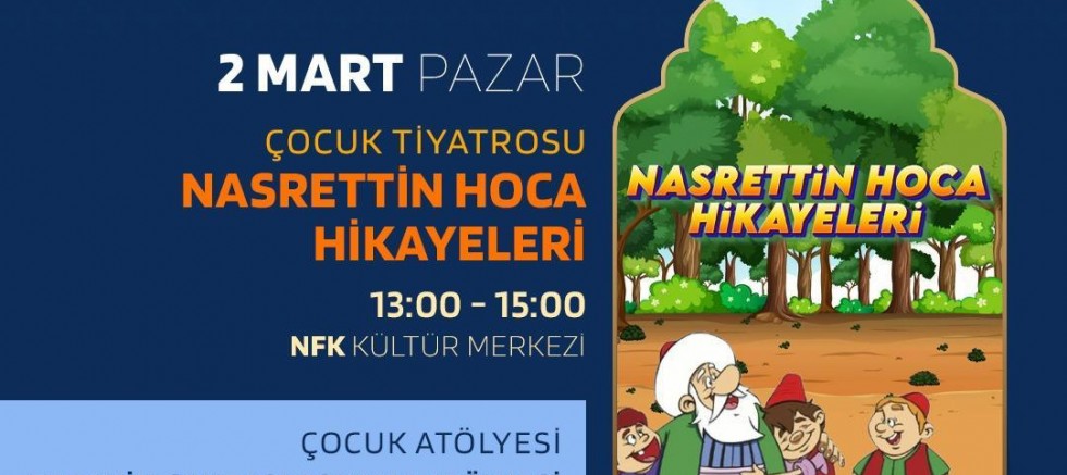 Büyükşehir Belediyesi, Ramazan etkinlikleri çerçevesinde 2 Mart Pazar günü NFK Kültür Merkezi’nde Nasrettin Hoca Hikâyeleri adlı tiyatro gösterisi ve Teravih Çantası Boyama Atölyesi’ni çocuklarla buluşturacak.