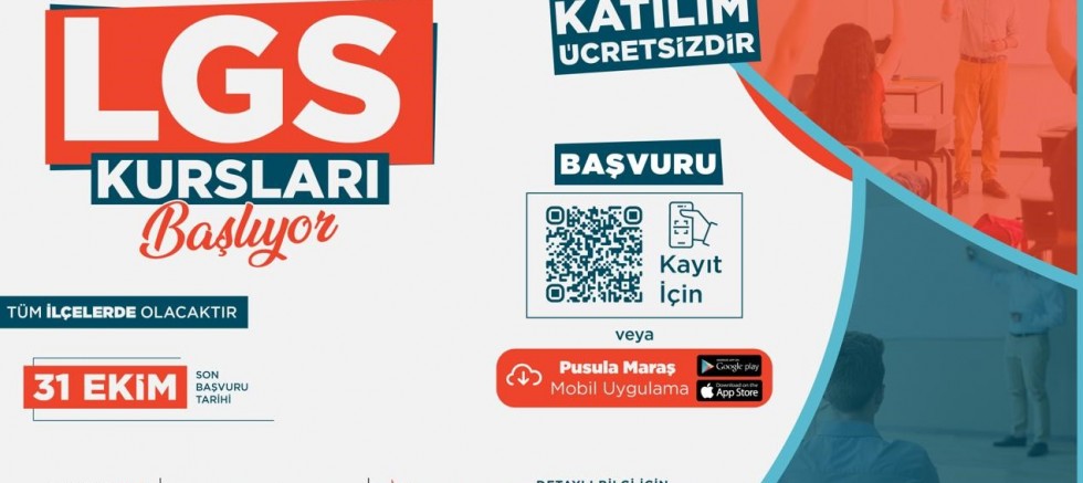 Kahramanmaraş Büyükşehir Belediyesi, LGS’ye hazırlanan öğrenciler için 11 ilçenin tamamında ücretsiz kurslar düzenleyecek. Kontanjanla sınırlı kurslara başvurular Pusula Maraş mobil uygulaması ve Büyükşehir Belediyesinin internet adresinden çevrimiçi yapılabiliyor.