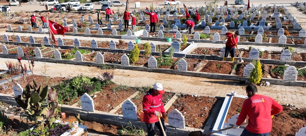 Kahramanmaraş Büyükşehir Belediyesi, şehir genelindeki mezarlıklarda bakım, onarım ve çevre düzenleme çalışmalarına aralıksız devam ediyor. Bu kapsamda Kapıçam Şehir Mezarlığı’nda yürütülen kapsamlı peyzaj çalışmalarıyla alanın doğal dokusu güçlendiriliyor. Çalışmaların merkezinde yer alan ağaçlandırma faaliyetleri kapsamında Kapıçam Şehir Mezarlığı’na bin 500 adet çam fidanı dikiliyor. Gerçekleştirilen fidan dikimiyle mezarlık alanının yeşil dokusunun zenginleştirilmesi hedefleniyor.