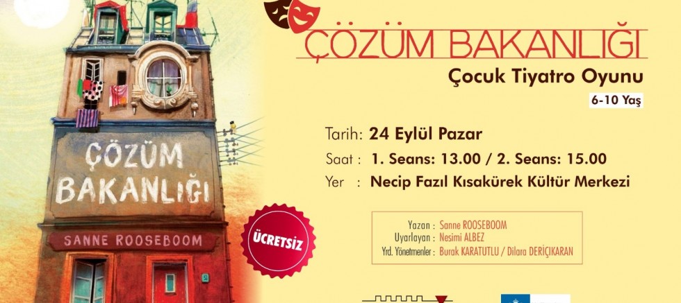 Kahramanmaraş Büyükşehir Belediyesi ve Hollanda Büyükelçiliği iş birliğiyle hayata geçirilen proje kapsamında düzenlenen ‘Çözüm Bakanlığı’ adlı tiyatro gösterisi, 24 Eylül Pazar günü NFK Kültür Merkezi’nde çocuklarla buluşacak. Ücretsiz olarak gerçekleştirilecek gösteriye tüm çocuklar davet edildi.