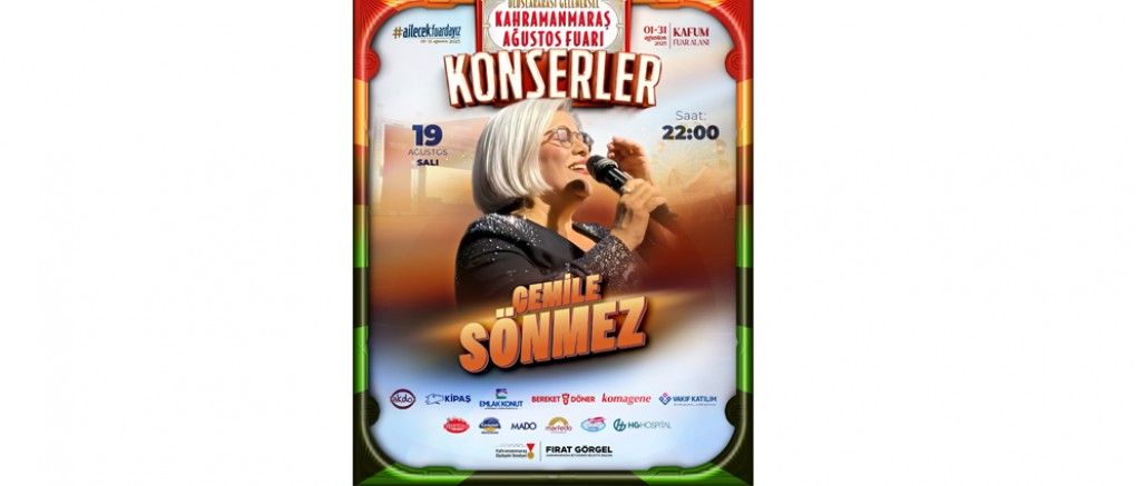 Kahramanmaraş Büyükşehir Belediyesinin Geleneksel Ağustos Fuarı’nda 19 Ağustos Salı akşamı, şehrin sevilen seslerinden Cemile Sönmez sahne alacak.