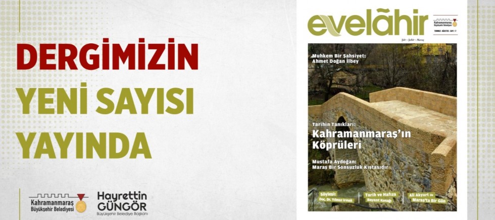 Şiir ve edebiyatın başkentinde kültür sanata derinlik kazandırmak için faaliyetlerini sürdüren Kahramanmaraş Büyükşehir Belediyesi, şehrin kültür sanat dergisi olan Evelâhir’in yeni sayısını okurlarla buluşturdu. Kahramanmaraş’ın tarihi değerlerine, yöresel lezzetlerine, önemli şahsiyetlerine ve el sanatlarına değinen, 6 Şubat depremlerindeki hüzün dolu hikâyeleri içerisinde barındıran derginin yeni sayısında birbirinden usta şair ve yazarların kaleminden dökülen eserler yer alıyor. Ele aldığı konularla okurlarını adeta geçmişe götüren derginin yeni sayısına e-dergi formatında https://kahramanmaras.bel.tr/e-dergi/evelahir-17-sayi internet adresinden ulaşılabiliyor.