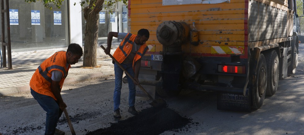 KASKİ, Dulkadiroğlu Mehmet Akif Mahallesi’nde altyapı imalatlarında bozulan yol yüzeylerini sıcak asfaltla kaplıyor.