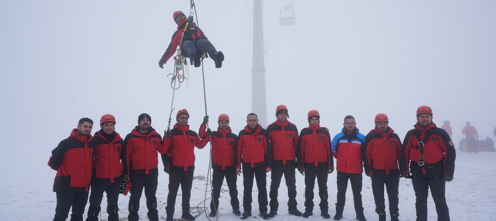 Büyükşehir Belediyesi İtfaiyesi, JAK, AFAD, 112 Acil Sağlık, UMKE, AKUT ve Yedikuyular Kayak Merkezi Kurtarma Ekibi iş birliğiyle gerçekleştirilen tatbikatta; senaryo gereği telesiyejde mahsur kalan vatandaşlar ekipler tarafından halatlar yardımıyla güvenli bir şekilde yere indirilerek sağlık ekiplerine teslim edildi.