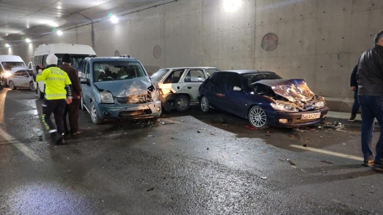 Edinilen bilgiye göre, Dulkadiroğlu İlçesi Kahramanmaraş-Gazinantep karayolu Arsan Kavşağı alt geçidinde dikkatsizlik sonucu 13 araç zincirleme trafik kazasına karıştı.