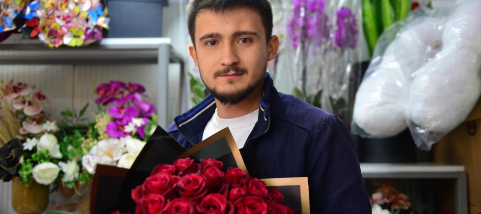 Mustafa Aktaş ve annesi, bu zor zamanlarda dahi aşkın ve sevginin sembolü olan çiçeklerle insanların yanında olmaya devam ediyor.