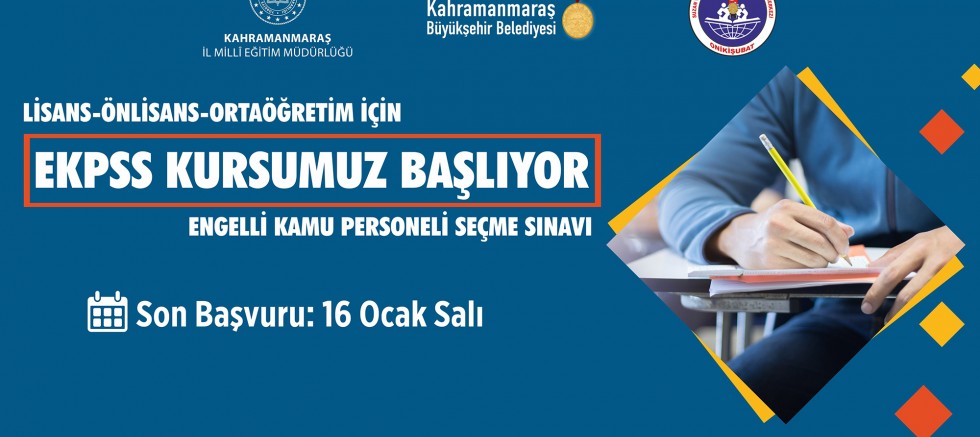 Sosyal belediyecilik çerçevesinde daima vatandaşın yanında olan, Başkan Hayrettin Güngör öncülüğünde sosyal desteklerini artırarak sürdüren Kahramanmaraş Büyükşehir Belediyesi, özel gereksinimli bireylere yönelik Engelli Kamu Personeli Seçme Sınavı (EKPSS) kursu düzenleyecek. İl Milli Eğitim Müdürlüğü ve Onikişubat Suzan ve Abdulhakim Bilgili Halk Eğitimi Merkezi iş birliğiyle ortaöğretim, önlisans ve lisans mezunlarına yönelik ücretsiz olarak düzenlenecek kurslara https://kahramanmaras.bel.tr/duyuru/2024/01/03/ekpss-kursu-on-kayit-basvuru-formu internet adresinden çevrimiçi başvuru yapılabilecek. 16 Ocak Salı gününe kadar devam edecek başvurulara ve kurslara ilişkin detaylı bilgiye 0344 225 71 88 ve 0344 216 25 01 numaralı telefonlardan ulaşılabileceği belirtildi.