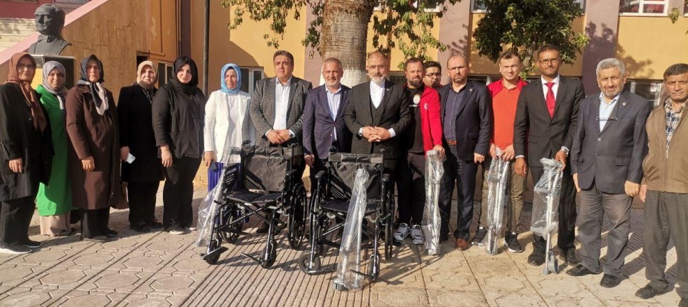 Depremde elini, ayağını kaybederek engelli birey haline gelen 10 vatandaşa tekerlekli sandalye, akülü araç ve baston dağıtımı gerçekleştirildi.
