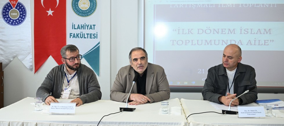 Kahramanmaraş Sütçü İmam Üniversitesi (KSÜ) İlahiyat Fakültesi tarafından düzenlenen “İlk Dönem İslam Toplumunda Aile” başlıklı ilmî toplantı, İlahiyat Fakültesi Konferans Salonunda gerçekleştirildi.