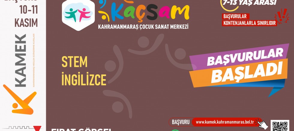 Kahramanmaraş Büyükşehir Belediyesinin Çocuk Sanat Merkezi’nde yeni dönem kayıtları başladı. Stem ve İngilizce kurslarına KAMEK’in internet adresinden çevrimiçi yapılan başvurularda son tarih 11 Kasım Salı.
