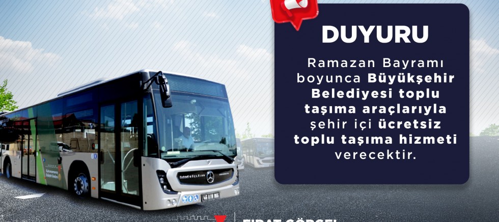 Kahramanmaraş Büyükşehir Belediyesi Otobüsleri, Ramazan Bayramı süresince ücretsiz olacak.