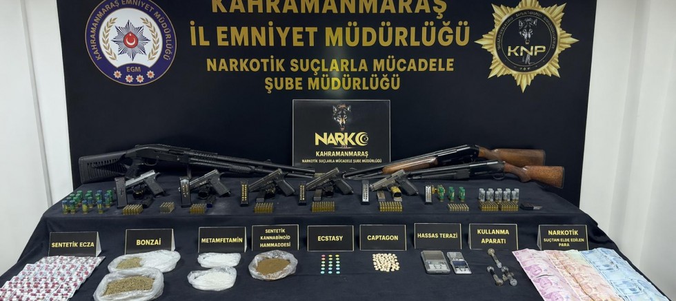 Edinilen bilgiye göre, başsavcılık koordinesinde 15 Ocak 2026 tarihinde başlatılan ve projeli olarak sürdürülen soruşturma çerçevesinde, 21 Nisan 2026’da Kahramanmaraş merkezli olmak üzere Gaziantep, Antalya, Tekirdağ ve İstanbul’da toplam 49 adrese eş zamanlı baskın yapıldı. Kahramanmaraş İl Emniyet Müdürlüğü Narkotik Suçlarla Mücadele Şube Müdürlüğü ekiplerince gerçekleştirilen operasyonlarda çok sayıda uyuşturucu madde ve silah ele geçirildi.