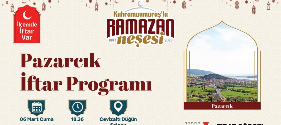 Kahramanmaraş Büyükşehir Belediyesinin düzenlediği “İlçemde İftar Var” programının bu seferki adresi Pazarcık olacak. 6 Mart Cuma günü Cevizaltı Düğün Salonu’nda gerçekleştirilecek olan programda yüzlerce vatandaş bir araya gelerek Ramazan’ın paylaşma kültürünü birlikte yaşayacak.