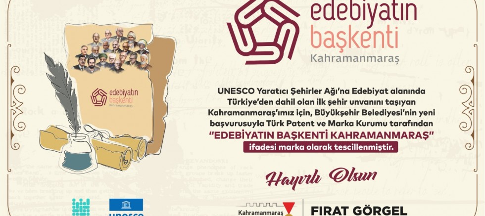UNESCO Yaratıcı Şehirler Ağı’na Edebiyat alanında Türkiye’den dahil olan ilk şehir olma unvanını taşıyan Kahramanmaraş için, Büyükşehir Belediyesinin başvurusuyla Türk Patent ve Marka Kurumu tarafından “Edebiyatın Başkenti Kahramanmaraş” ifadesi marka olarak tescillendi.