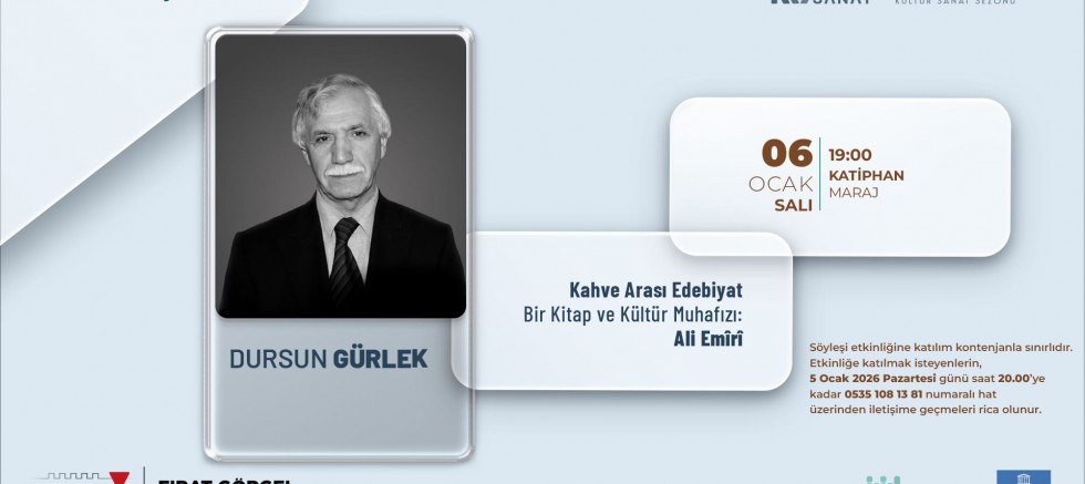 Kahramanmaraş Büyükşehir Belediyesi, 6 Ocak Salı günü, tarihçi – yazar Dursun Gürlek’in katılımıyla “Bir Kitap ve Kültür Muhafızı: Ali Emîrî” konulu söyleşi düzenleyecek.