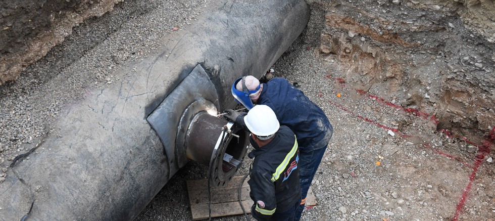 KASKİ ekipleri, altyapı imalatlarında canlı bağlantı tekniğini kullanarak su kesintisine mahal vermeden yeni hatları devreye alıyor.